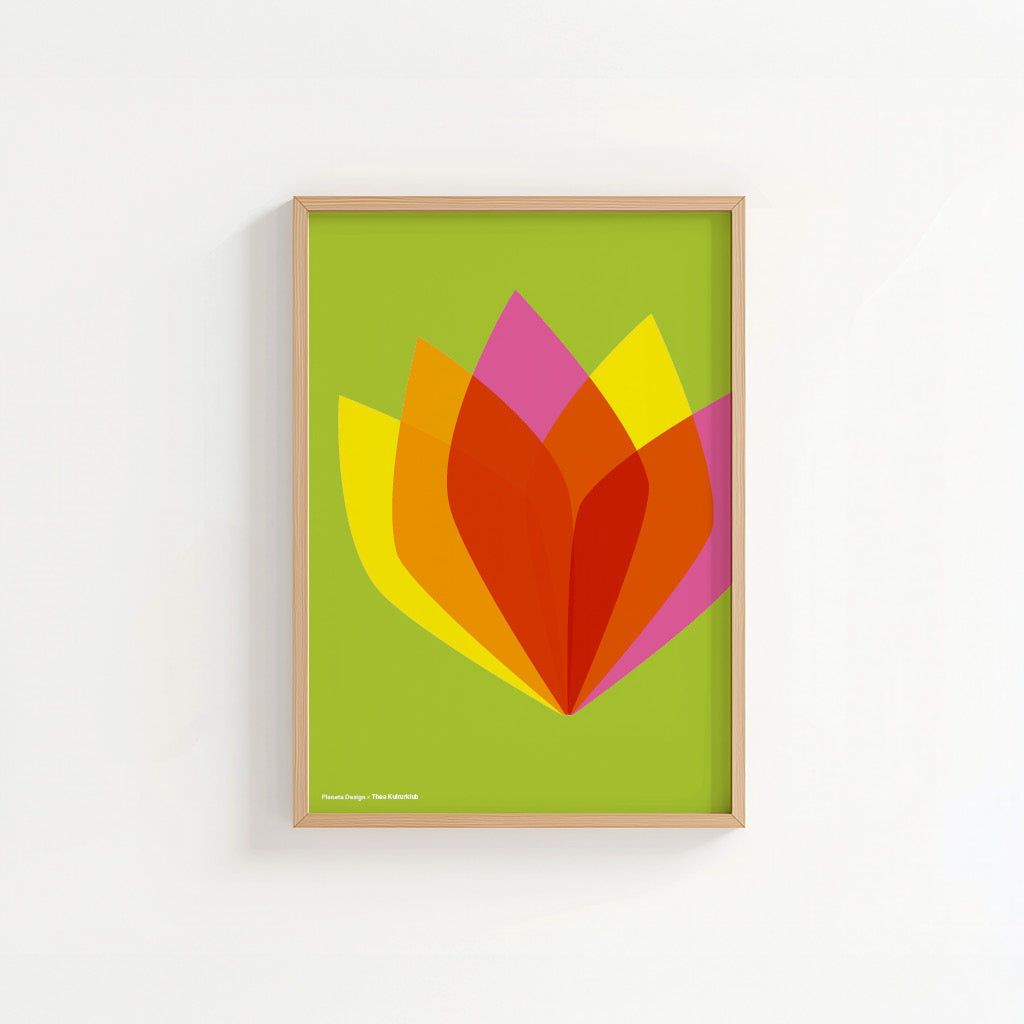 Die Blüte symbolisiert Inspiration, Imitation, Schöpfung. Es ist im hochwertigen 12-Farb-Giclée-Verfahren auf FSC-zertifiziertem Premiumpapier gedruckt und überzeugt mit klaren Farben, feiner Detailtreue und langlebiger Qualität. Nachhaltig produziert und schnell geliefert, ein perfekter Wanddruck für Design- und KunstliebhaberInnen.